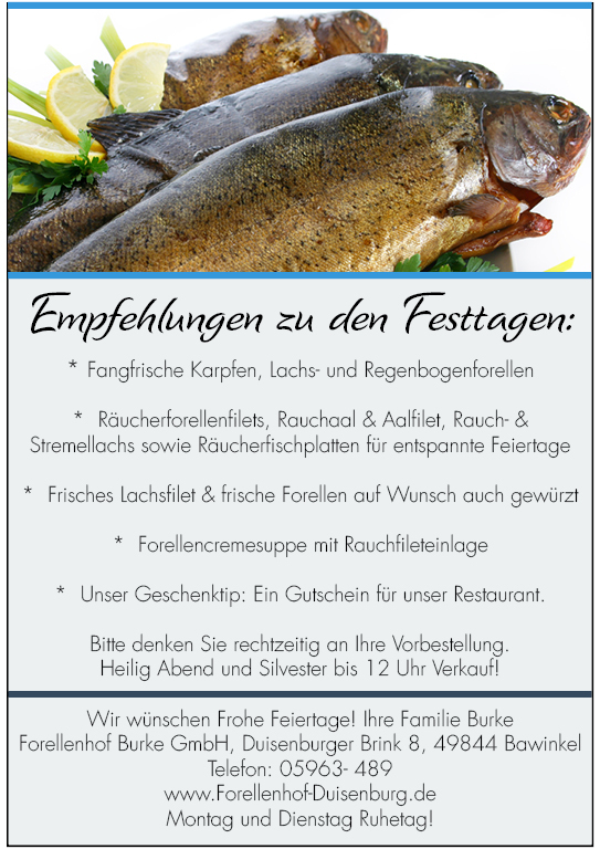Ihre Bestellungen und Reservierungen nehmen wir gerne unter 05963-489 an.